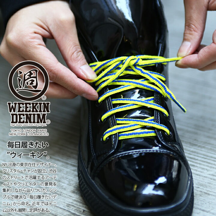 スニーカーを簡単にイメチェンできる魔法のシューレース!有名アーティストやファッショニスタが着用し話題の東京渋谷発ストリート系ブランド「WEEKIN DENIM/ウィーキンデニム」からオシャレな靴ひもが入荷!エイジレスな大人のデザインでストリート系雑誌でも注目されている人気ブランド。